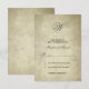 This RSVP card has a vintage look, its paper printed to seem faded and stained. Elegant fonts and a simple monogram.