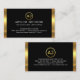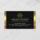 At the top is a gold circle logo where you can place your name initials-monogram (You can use different sizes of fonts or styles to your liking). Underneath this lies your prestigious name, the job title and its contact details.