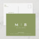 Simple Moss Green Monogram Wedding Save the Date Postcard