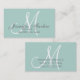Elegant Monogram Customisable Mummy Calling Card on a mint green background with grey and white text colours. Being a mother is just as difficult, if not harder, than any professional career. Why not elevate it to a professional level with this elegant monogram mummy calling card. Add your information. Elke Clarke©2010. Contact store for other background colours.