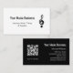 Simple music education business card, with a black and white design and a musical treble clef symbol. With black customisable lettering, you customise with your own information. You also add your website to allow for connection with a QR code. Great for promoting your teaching or performing business.