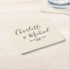 Simple Natural White Script Minimalist Wedding Square Paper Coaster