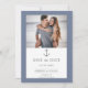 Send guests this modern and elegant Simple Nautical Anchor Photo Save the Date. Announcement design features a minimal layout and contemporary fonts adorned with an anchor. Add your favourite photo and wedding date to customise.