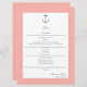 Add a touch of seaside sophistication to your celebration with this Coral Simple Nautical Anchor Wedding Menu, featuring a classic anchor motif and elegant coastal design. Perfect for beachside or maritime-themed receptions, this menu showcases your reception dinner options in a clean, simple layout. Elegant script and modern typography beautifully highlight each course while complementing the overall style of your coastal wedding theme. A stylish detail that enhances your table setting and guides guests through your carefully curated dining experience.