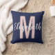 Simple Navy Blue Blush Pink Hand Script Monogram Cushion