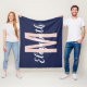 Simple Navy Blue Blush Pink Hand Script Monogram Fleece Blanket