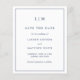 Simple budget save the date featuring a modern yet elegant design with your two letter monogram at the top and your wedding details surrounded by a thin border. All design elements are in navy blue and may be changed in the design editing tool. A chic and stylish design that is great for a minimalist couple.