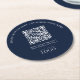 Simple Navy Blue Business Logo QR Code Promotional Round Paper Coaster