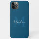 Simple Navy Blue Elegant Script Monogram iPhone 11 Pro Max Case