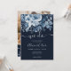 An elegant chic and simple navy blue indigo floral watercolor illustration and script photo initials wedding , add 4 of your favourite couple photo , chic wedding invitation, add your initials at the back. Perfect for small casual weddings.