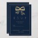 Simple navy blue gold glitter bow ribbon RSVP Invitation