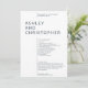 Simple minimalist wedding ceremony program stripped of extraneous ornamentation and prioritising functionality, balance and harmony. The design highlights the couple’s names as a focal point in a large isolated text block, shifting the margin for the remaining details. Clean minimalist typography. Back of card includes the bridal party and a simple memoriam details in white text on a coloured background. Available in a curated selection of rich modern colours. Design is easily customised and personalised. Please reach out with any comments or for assistance to meet your individual need. Always happy to help! Note: Leave any text areas blank to remove or use the design tool for more specific, elaborate customisations.