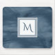 Simple Navy Blue Subtle Marble Modern Monogram Mouse Pad