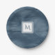 Simple Navy Blue Subtle Marble Modern Monogram Paper Plate