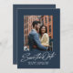 This stylish save the date features a retro inspired script "save the date" under a single photo on a classic navy blue background along with simple custom text. The back of this modern save the date has a coordinating blue stripe along with a horizontal photo, room for a custom message and a QR code for your wedding website. This vertical design is great for a trendy and stylish couple and it's a great way for the engaged couple to share wedding information with friends and family. Find more colours and styles in the collection by Lea Delaveris Design. Also available as a digital save the date download.