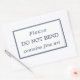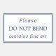 Shipping label for fine art that reads "please do not bend contains fine art" in navy blue against white. Navy blue borders surround the text. A simple, clear design.