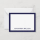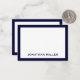 Double-sided timeless custom flat note card design features navy blue and white monogram design with name in the lower thirds, framed in navy. Classic block typography that can be personalised with your name or custom text. Space for your handwritten note is included on the front and back.