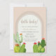 Simple Neutral Boho Cactus Arch Hello Baby Shower Invitation