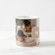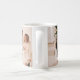 Simple neutral monogram two photo mug features a classic picture grid with neutral taupe and white monogram.