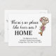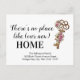 This is a simple and classic moving announcement postcard with 'There's no place like our NEW HOME' script typography with a floral vintage key design.