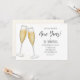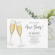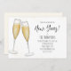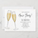 This design features a simple new years eve day, party champagne wine celebration festive, QR code Facebook events page, with URL social media website online, a trendy stylish gold bubbly toast, a watercolor champagne flute glasses glass, an elegant calligraphy script text font, a whimsical typography style design, a modern Christmas holiday glitter, a classy-vintage retro cute simplistic