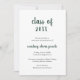 Minimalist graduation announcement card featuring a simple and classic design with "class of year" and the graduate's name in a thick forest green script handwriting over a white background. The backside is solid forest green. A traditional announcement card with a modern flair for a girl graduate.