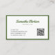 Minimal Bordered Olive Green and White Business card in Professional and Classic Handwritten Script typography with QR code and simple contact details.