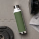 Modern olive green water bottle featuring a simple and minimalist design with your name in an elegant script. A cute design perfect for a girly girl.