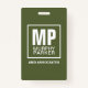 Simple Olive Green Square Monogram Logo Photo Badg ID Badge