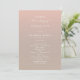 Simple Ombre Blush Pink & Beige Wedding Ceremony Program. This modern minimal Order of Services Card is simple classic and elegant with a subtle ombre gradient fade and a pretty signature script calligraphy font with tails. Shown in the Chic Ombre Blush Pink & Beige Colorway. Available in several colour options, or feel free to edit the colours from within the editor (click customise further while personalising).