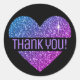 Simple Ombre Rainbow Glitter Heart Shape Thank You Classic Round Sticker
