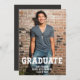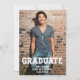 Simple one photo graduation announcement with typography overlay. The word Graduate uses a cool distressed font. Add your special photo, name, school and class of 2023 (or edit). See coordinating items in our shop, Enchanted Finch.