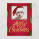 Simple One Photo Red And Green Stripe Christmas Holiday Postcard