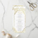 This wedding program embraces a minimalist gold design with a touch of simple charm. The front cover presents the couple’s names inside a clean golden frame, highlighting elegance through simplicity. The back side carries the full wedding details in a neat layout, subtly accented with refined golden flourishes. Its understated style and modern minimalism make this program card ideal for couples who prefer timeless sophistication with a graceful, charming touch.