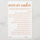 Simple "Over or Under?" baby shower or gender reveal party quiz game featuring a fun, casual hand-lettered script. The classic design includes a modern handlettered quote typography overlay. For other colours or matching products, please visit the JustFharryn Zazzle store, or contact the designer, c/o Fharryn@yahoo.com All rights reserved. #bohochic #zazzlemade