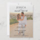 This stunning photo wedding invitation beautifully combines elegance and modernity, making it perfect for any season. It features a blend of calligraphy, serif, and sans serif fonts for a contemporary aesthetic. The front showcases a photo of the couple with a soft gradient overlay, while the back includes another photo of the couple along with a customizable monogram. To personalize this design, simply click on "Personalize This Design," upload your photos, enter your information, and Zazzle will handle the rest.
