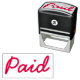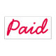 This rubber stamp design features the message "Paid". It could perhaps be used to indicate that a bill or invoice has been paid in full.
