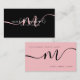 Simple Pale Pink Minimal Monogram Script Black Business Card