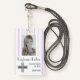 A minimalist and simple design featuring pastel stripes and white coloured background, photo, barcode and logo template. Easily customise this badge to your brand. -designed with ❤ by Zaubershirts-