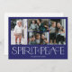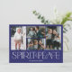 These simple holiday photo greeting cards feature the greeting, “Spirit of Peace,” in large white letters on a royal blue background with placeholders to add four of your favourite photos, family name & the year.