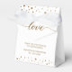 Customise this wedding favour tag with the bride and groom's names and wedding date. Personalised, simple, and elegant with printed gold confetti and "Love" Script. Impress your guests with this personal touch for your giveaways.