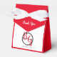 This design features an elegant yet simple arrangement of the bride's and groom's personalised initials. The couples names are encircled with a black ring and placed on top of the bride's and groom's first name initials which are displayed in red colour typography. This red, black and white design is simple yet elegant in every way. The combination of colours creates a sophisticated, trendy and chic style. Elegant wedding favour box design with modern elements. The simple setup of the typography gives it a distinct style. Matching wedding invitations and other stationery items are also available.