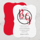 This design features an elegant yet simple arrangement of the bride's and groom's personalised initials. The couples names are encircled with a black ring and placed on top of the bride's and groom's first name initials which are displayed in red colour typography. This red, black and white design is simple yet elegant in every way. The reverse displays a red colour background. The combination of colours creates a sophisticated, trendy and chic style. Elegant wedding invitation design with modern elements. The simple setup of the typography gives it a distinct style. Matching wedding stationery items and other wedding invite formats are also available.