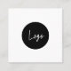 simple black and white design with custom logo and QR code. You can customise the text and other features including the shape and size.