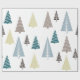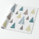 Minimal one photo christmas holiday gift wrap featuring five geometric christmas trees on a crisp white background, ideal minimal gift wrap for the holiday season.