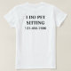 Simple pet sitter tshirts with the words I do pet sitting in bold letters and contact number that stands out so it's easy to remember. Designed as a work shirt for someone who takes care of pets that can be worn by you or your family and friends to get your name out there on a budget.