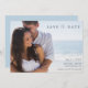 Simple photo save the date for your upcoming beach wedding in California, Florida or a tropical destination. This design will work best with a photo that is offset with the couple on the left side, similar to the example photo.