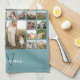Simple Photo Collage Custom Colour Personalised Kitchen Towel. Easily add your photos and adjust colours for a custom kitchen towel.