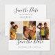 This modern script photo save the date card features your three special photos overlayed with an elegant script save the date above your names, date and venue in white typography. The reverse has additional save the date details, including your wedding website, with your return address and space for your recipient's address. Designed by Thisisnotme©