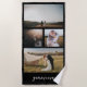 Modern beach towel featuring a simple and minimal design with a photo collage of four of your favourite wedding pictures along with your name in an elegant script over a black background. This custom beach towel is perfect for a new bride.